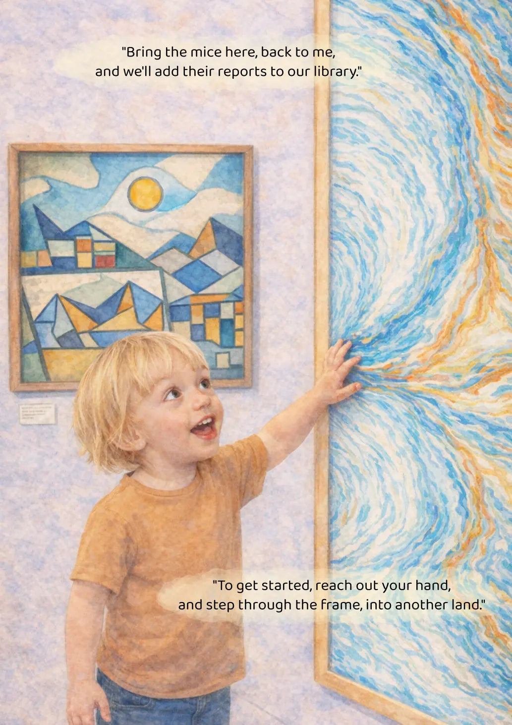 When your child visits the art gallery, they must venture through the frames, into the artworks, in search of the gallery mice.