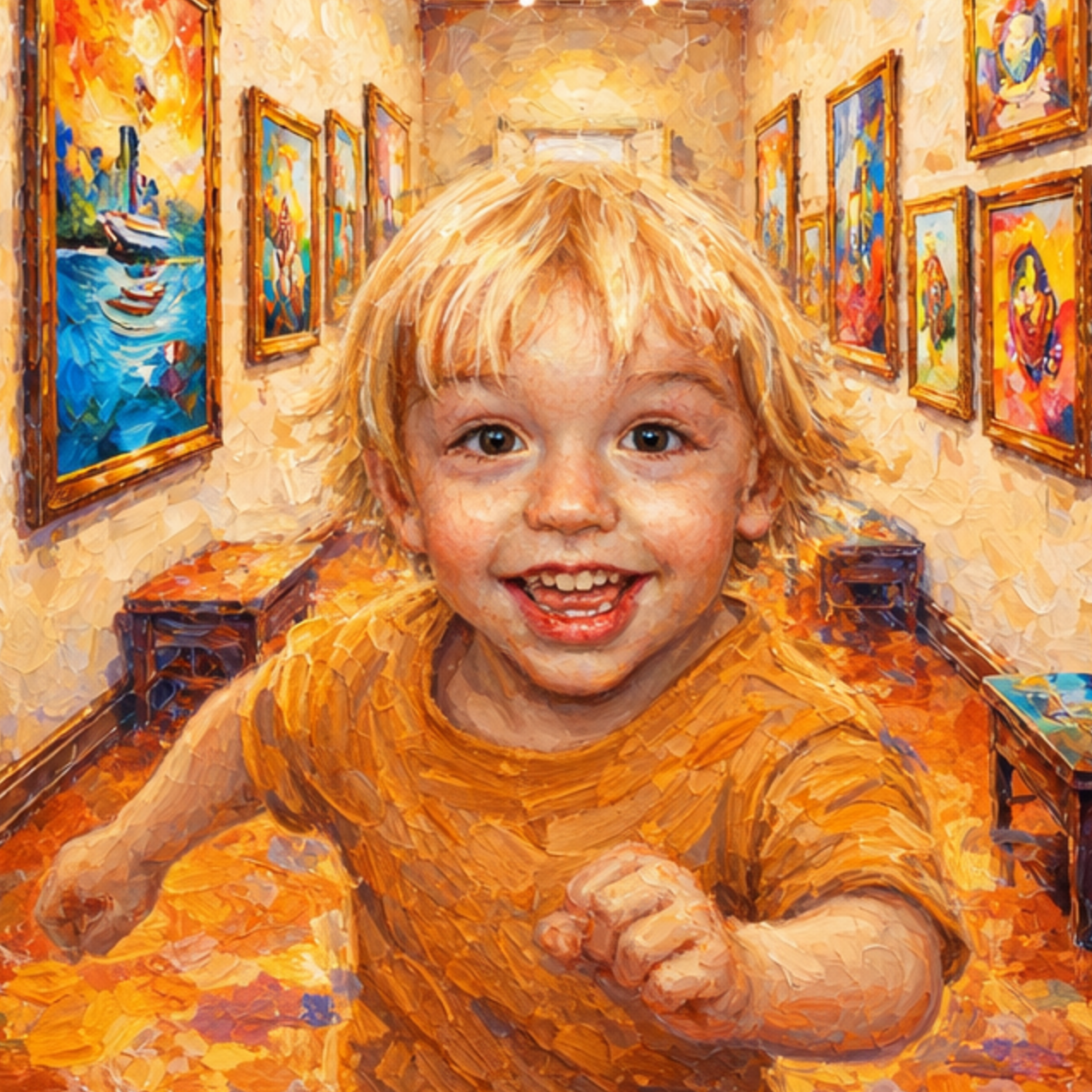 The story and gallery remain consistent, but the main character is personalised using your child’s photos - so they truly step inside the art.